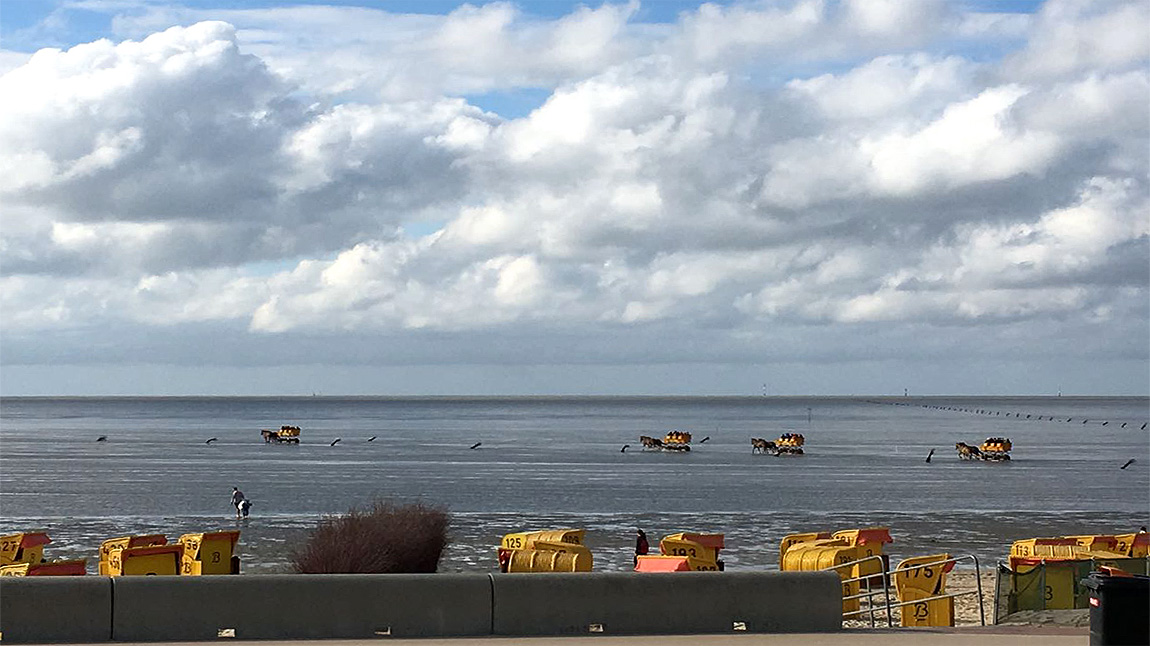 Bei Ebbe kann man mit diesen Pferdegespannen bis auf die vorgelagerte Insel Neuwerk und auch wieder zurück fahren. Ein Erlebnis besonderer Art!