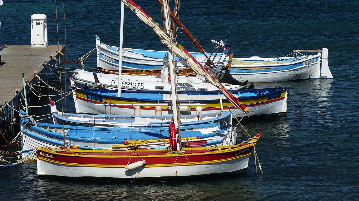Im Port de la Madrague dümpeln die alten, Gaffel getakelten Segelboote malerisch vor sich hin...