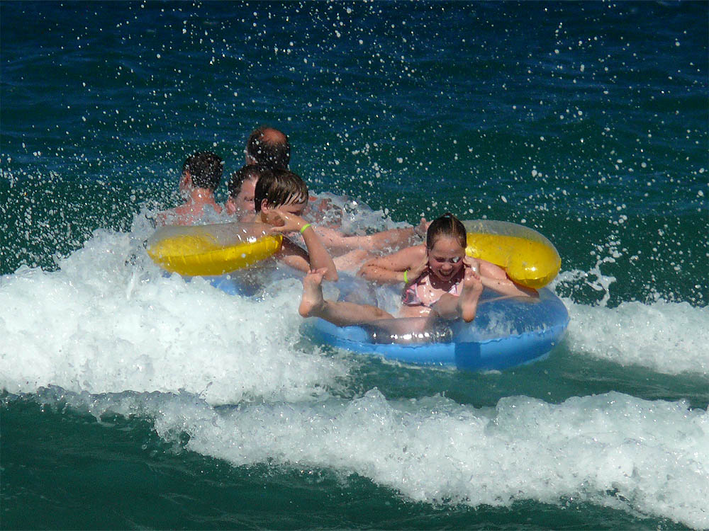 kann hier wunderbar im Meer schwimmen, nach 50 Metern tiefem Wasser landet man auf einer Sandbank mit einer tollen Brandung! Bei den Temperaturen um 30° zischt das Wasser richtig, wenn man hineingeht.