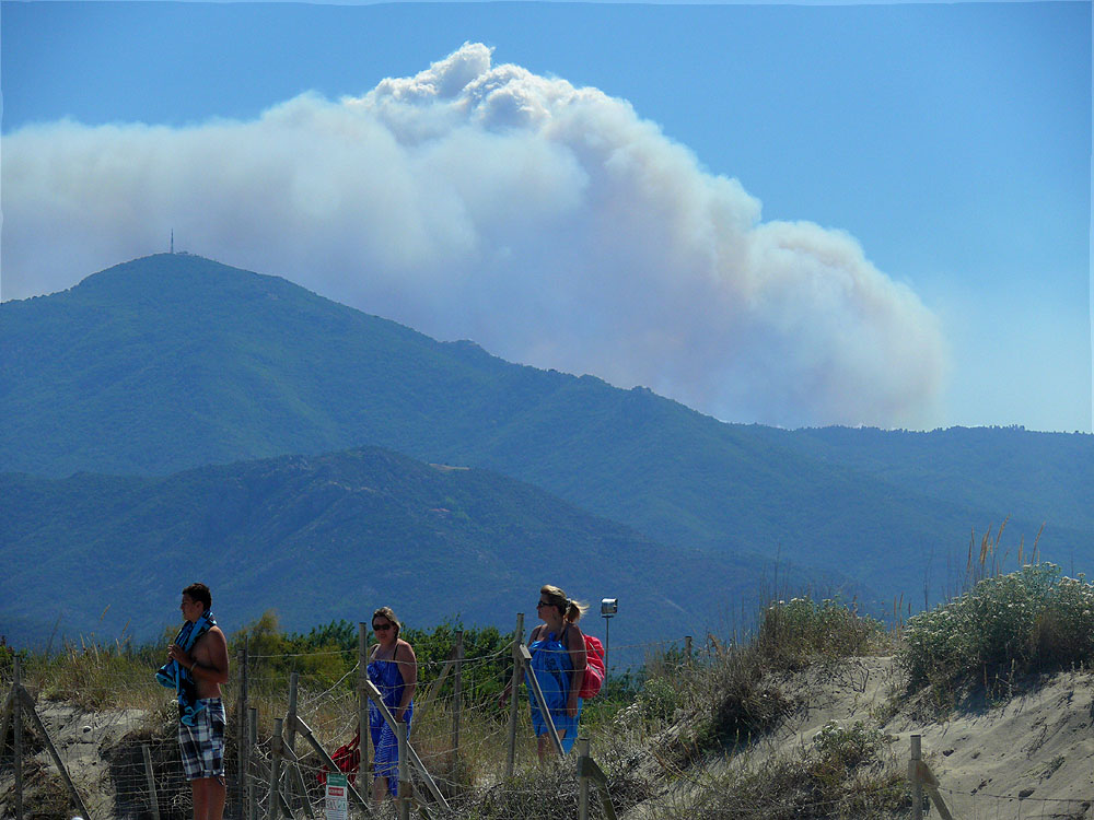 Die dichten Rauchwolken über den Pyrenäen, die man vom Strand aus an den letzten Urlaubstagen sieht, lassen nichts Gutes erahnen.
