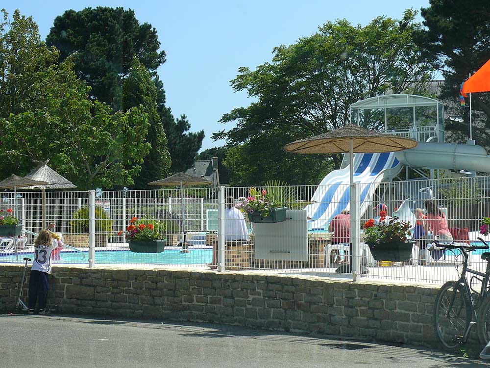 Vorbei am sauberen und beheizten Schwimmbad geht es in die Richtung unseres Stellplatzes.