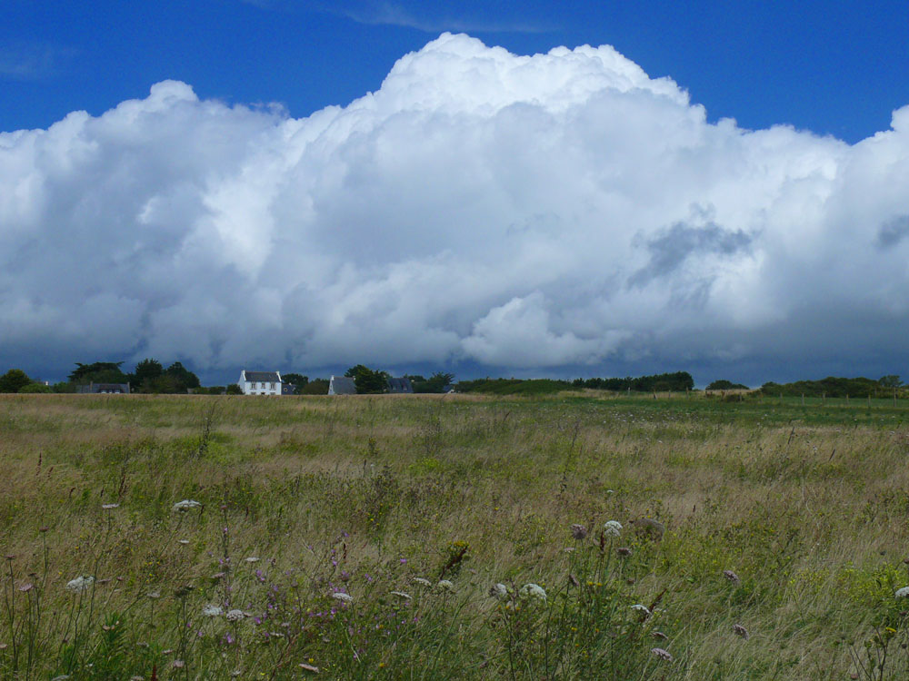 Dicke, gewaltige Wolkenberge ziehen über die Südbretagne, als wir uns aufmachen, zu Fuß das kleine Gallische Dorf zu besuchen.