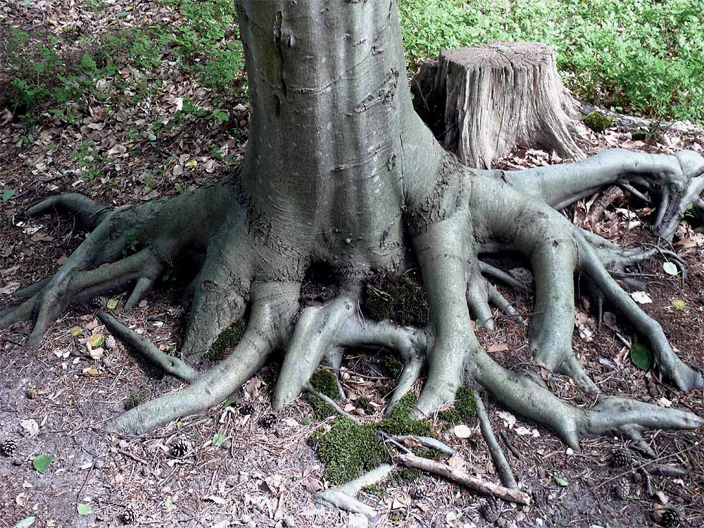 Beeindruckend, wie diese Buche sich mit ihren vielen Wurzeln im Waldboden förmlich festkrallt!
