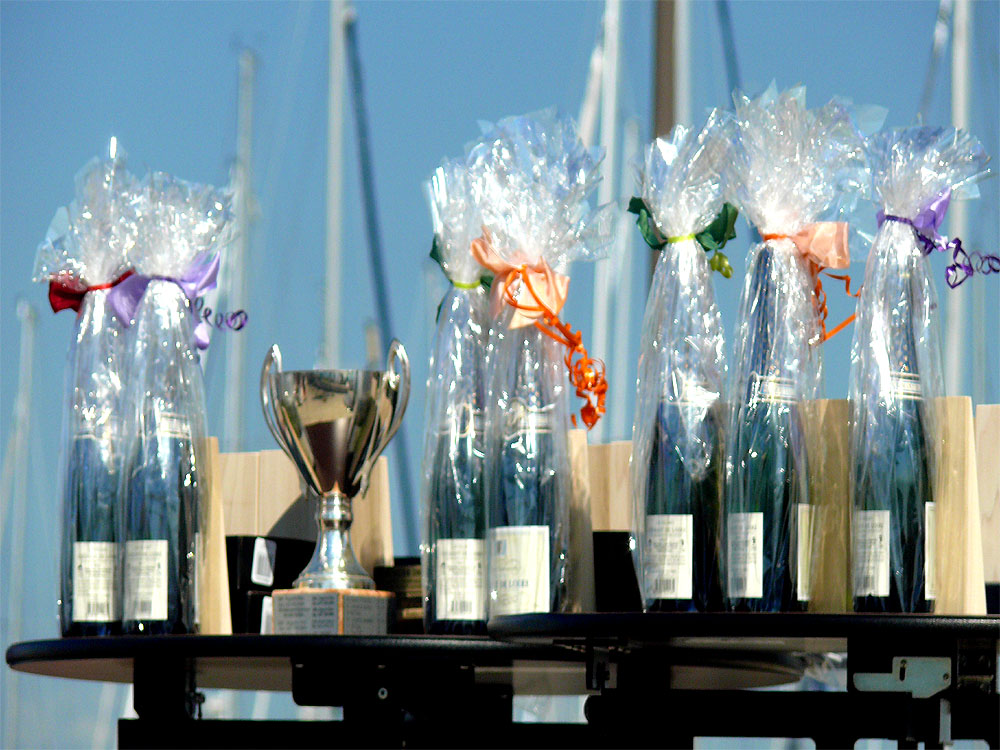 Auf die Sieger warten schon ein Riesenpokal und eine ganze Batterie teuren Schaumweins!