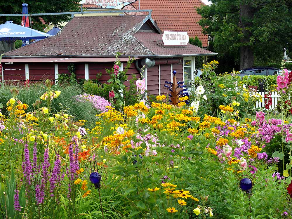 Ein herrlicher Blumengarten mit angrenzender Fischbude...