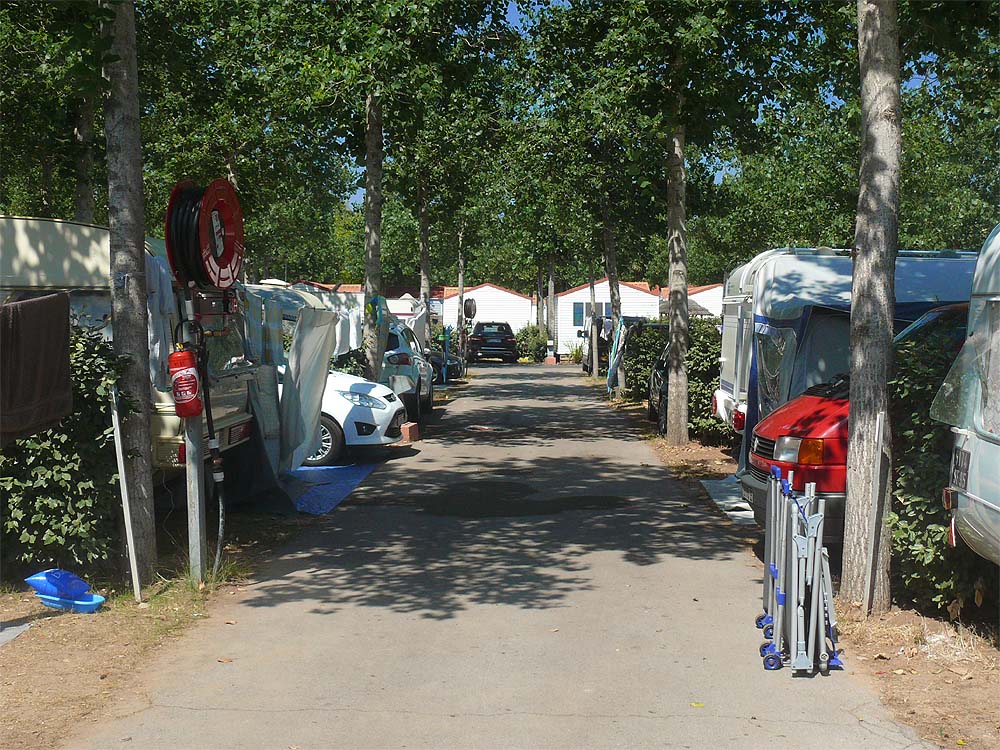 Vom Strand aus geht es durch "unsere Straße", die für die ersten 2 Wochen rein belgisch ist. Die Stellplätze sind groß und unterschiedlich schattig und mit großen Hecken umgeben.