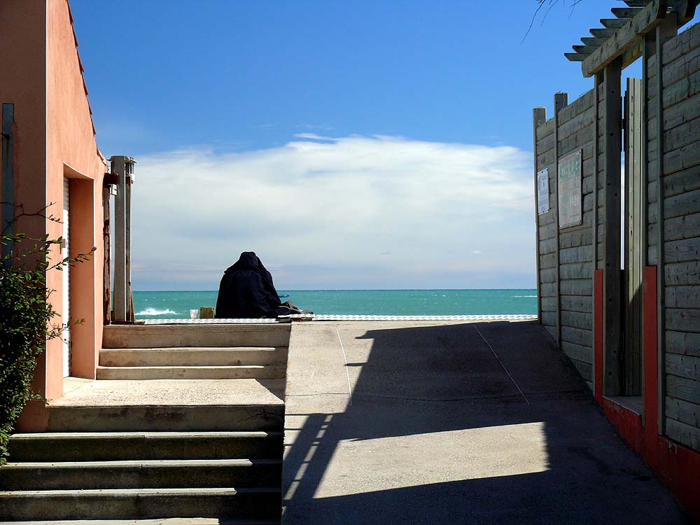 Licht und Schatten am Strandaufgang des Campings "Nouvelle Floride"...