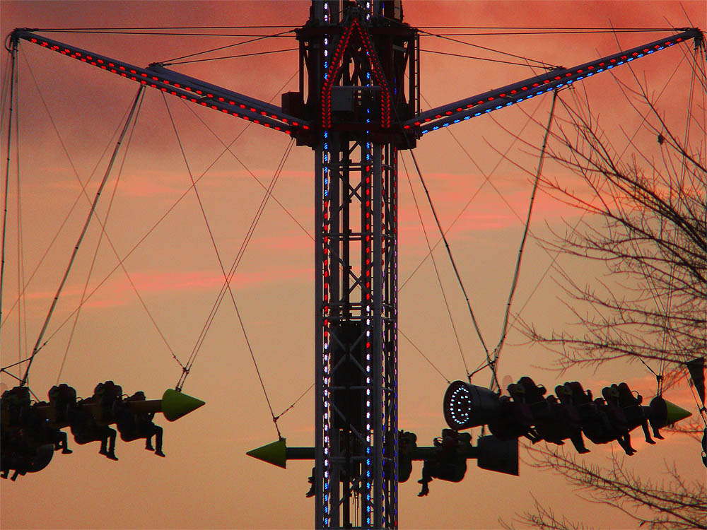 ! Dann steht alles Kopf und nichts ist mehr normal, auch nicht der Blick aus meiner Dachkammer auf die Karussells...