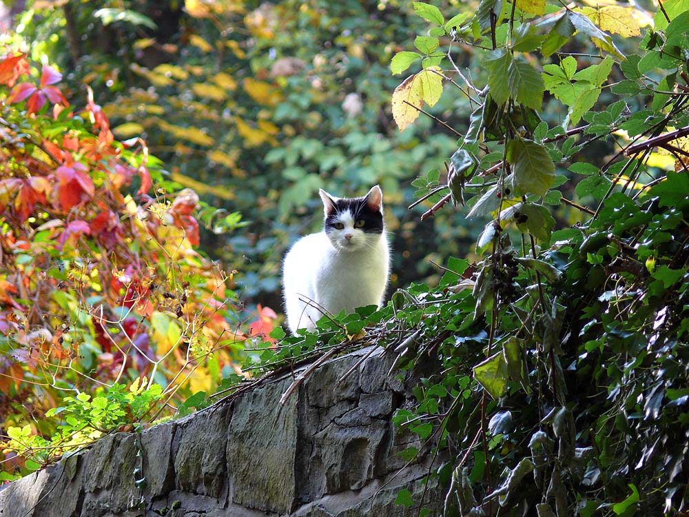 Aug' in Aug' mit der schwarzweißen Katze am herbstbunten Walldurchgang...