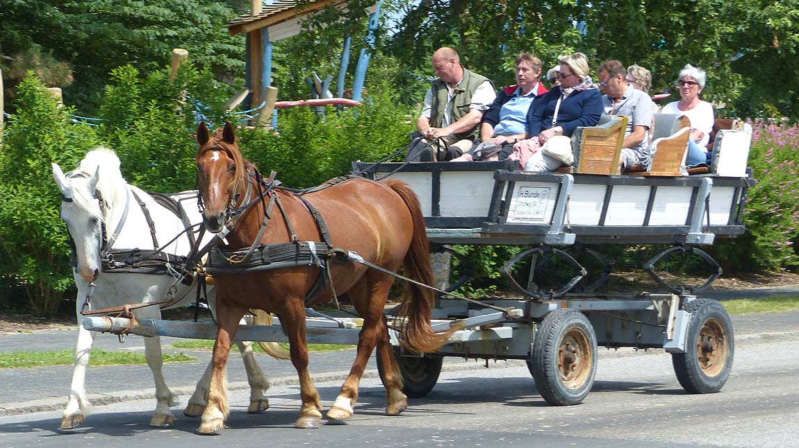 Andere hochrädrige Kutschen sind schon mit Passagieren beladen!