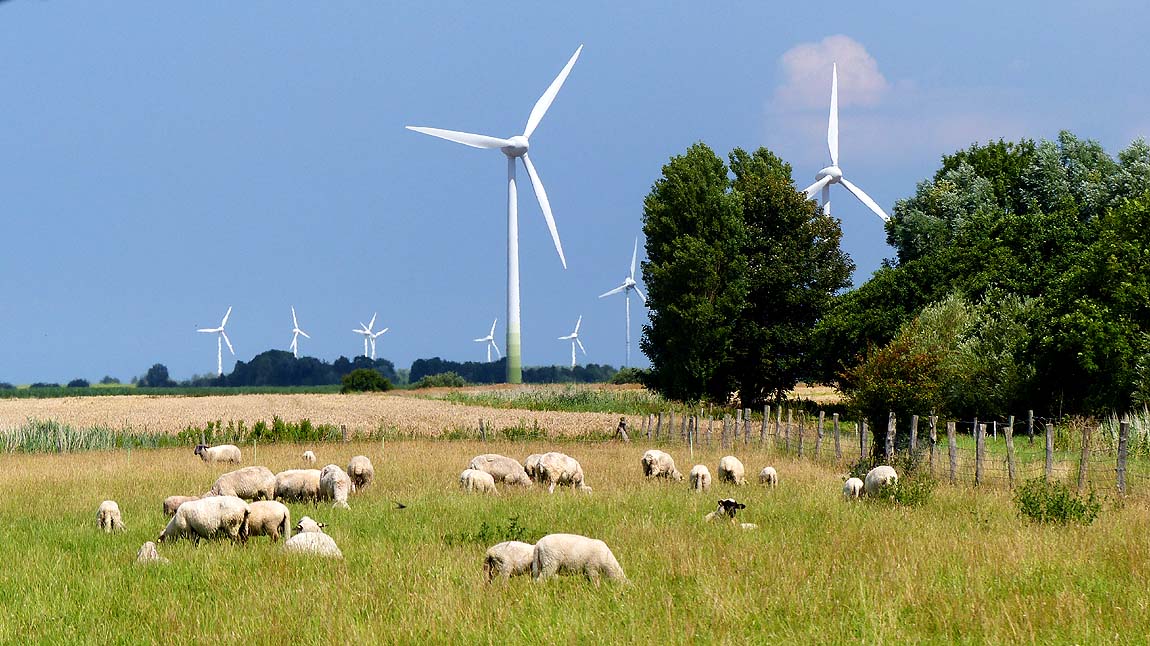 Typisch für die ostfriesische Landschaft sind die sich dauernd drehenden Windräder und die vielen blökenden Schafe!