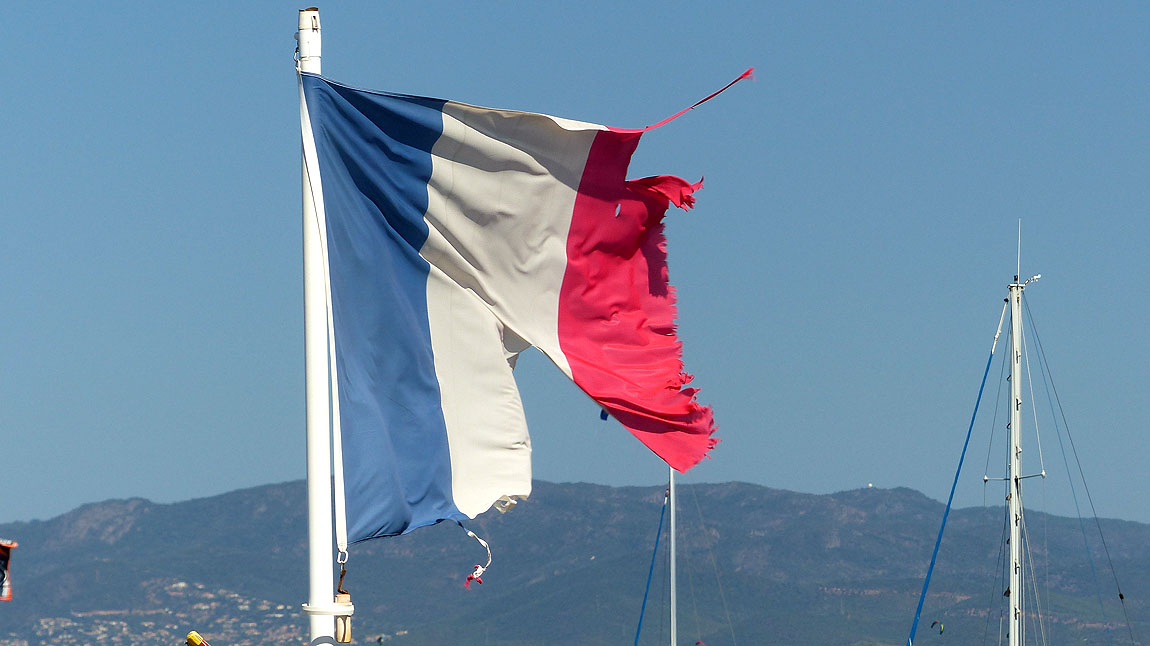 Der stramme Mistral hat der ehrwürdigen Trikolore schon arg zugesetzt und sie zerfetzt!