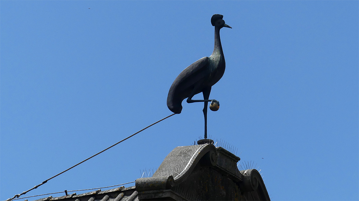 Der Kranich steht souverän auf dem Kranichhaus, dem wichtigsten Museum hier in der Hadelner Region!