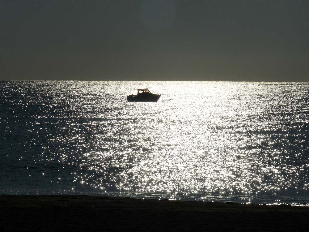 Am nächsten Morgen, selbst bei dem wunderschönen Sonnenaufgang am Strand, riecht es ganz intensiv nach Qualm und plötzlich hört man ein tiefes Motorengeräusch...