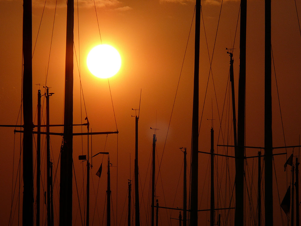 Den Sonnenuntergang erleben wir im Yachthafen mit einem guten Rotwein!