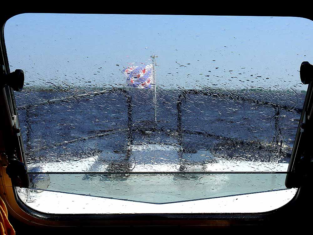 Dann, im Geestermeer, kommen wir in schwere See und der stramme Wind haut die Brecher vor unsere Scheiben! Nervenkitzel!