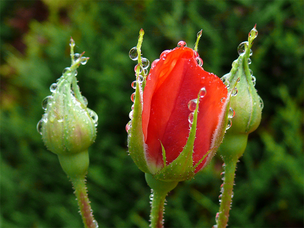 Auch dieses bretonische Röschen erscheint durch die Tröpfchen wie geschmückt!