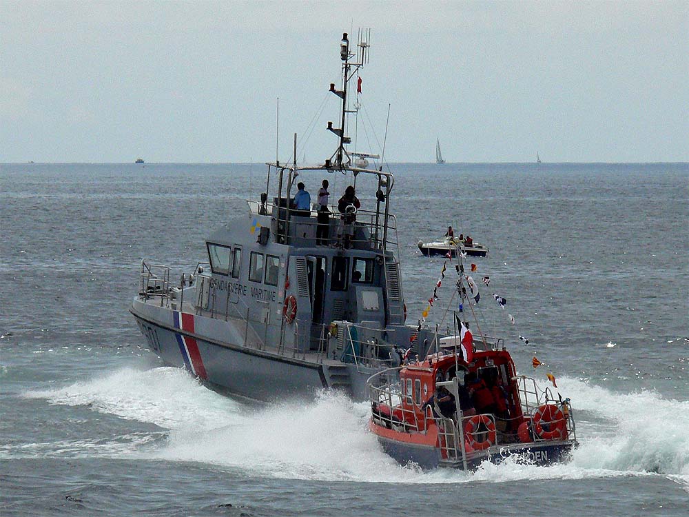 Unter lautem Sirenen- und Hupengetöse fahren die Kähne nun unter der Führung der Gendarmerie Maritime die sogenannte Quadrille auf das Meer hinaus und kommen selbstverständlich auch so zurück!