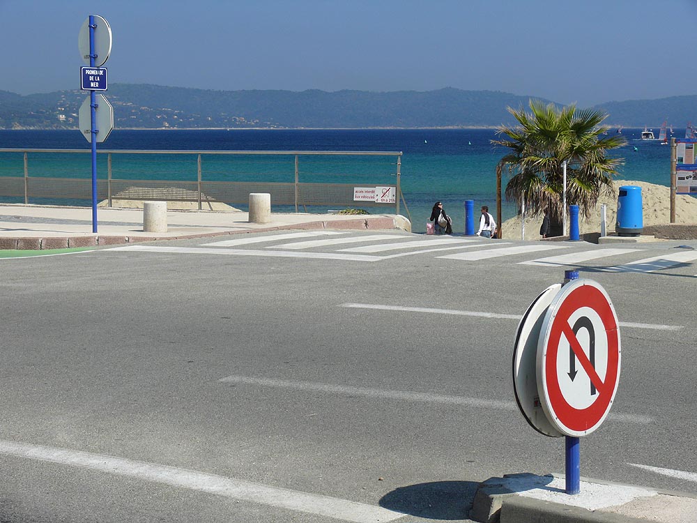 Das Mittelmeer zeigt sich in seinen schönsten Blautönen in Farbkontrast zum rot-weißen Verkehrsschild!