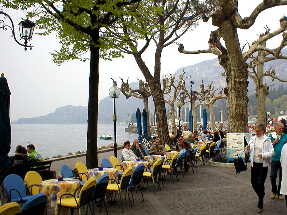 Eine Schifffahrt nach Garda ist auf dem Plan. Das Wetter ist diesig, aber (noch) trocken. Wie viele andere Touristen flanieren wir an der Promenade entlang: "Sehen und gesehen werden!"