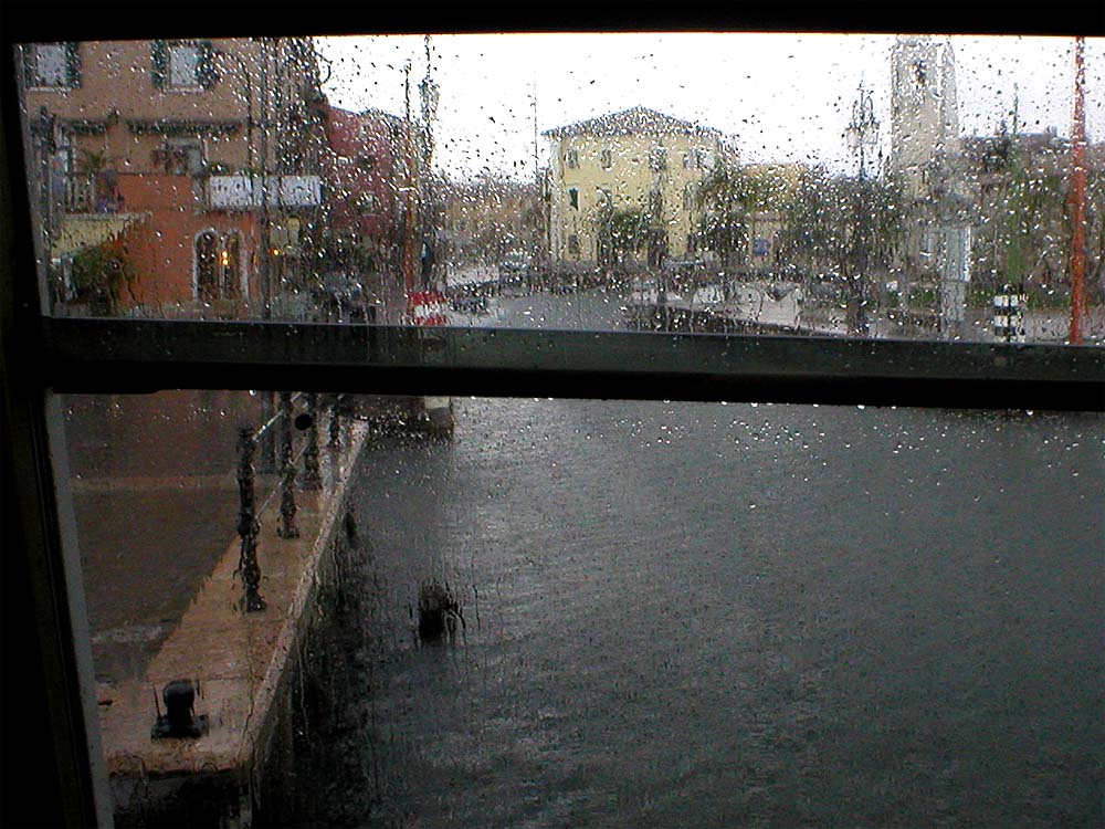 Bis jetzt waren wir noch trocken, aber beim Aussteigen in Lazise werden wir klatschnass bis auf die Haut!