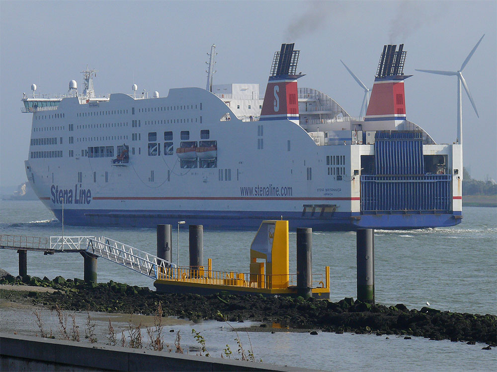 Dort sehen wir die eindrucksvolle Fähre der StenaLine, aus England kommend.