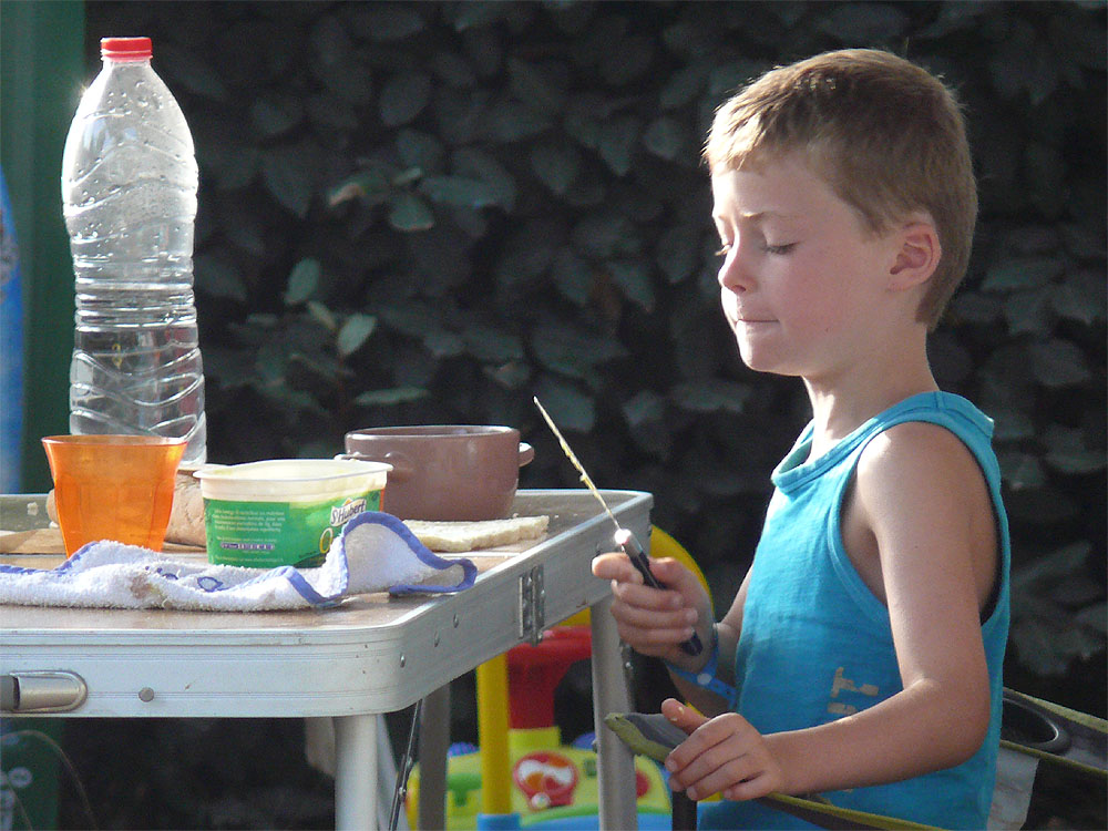 Da ich am Abend oft Gitarre spiele, habe ich in der Nachbarschaft einen kleinen Freund gefunden, dem meine Klimperei wohl gefällt. Er heißt Gabin...