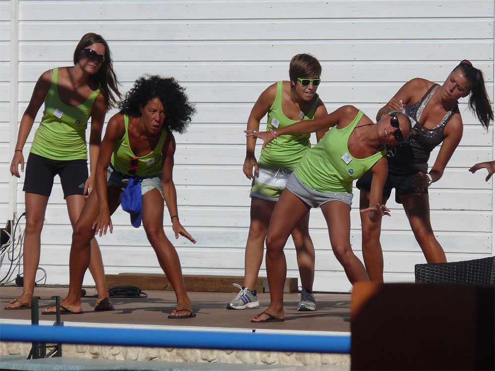 Die Animatösen üben schon am Morgen ein Tänzchen ein, welches dann am Abend aufgeführt wird.