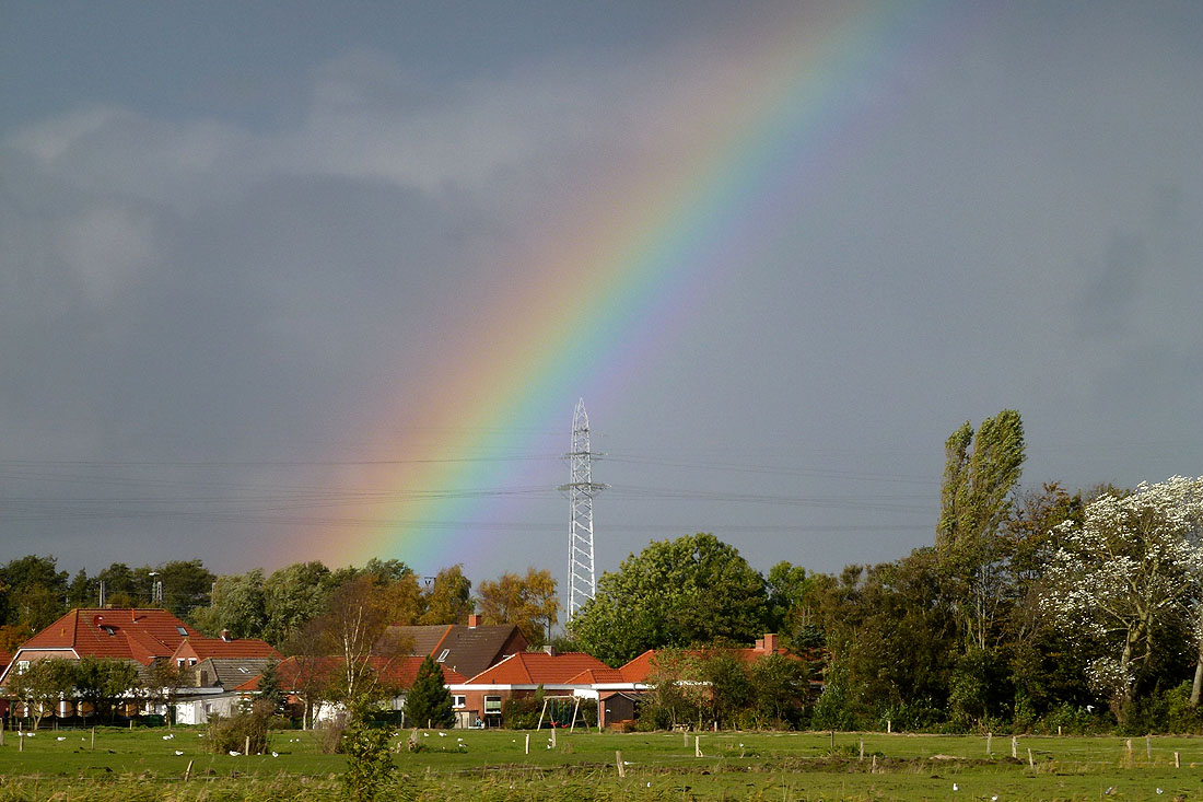 Noch eben schnell zum Supermarkt in Norddeich, denn wir brauchen einiges. Vom Parkplatz aus erblicken wir einen wunderbaren Regenbogen!