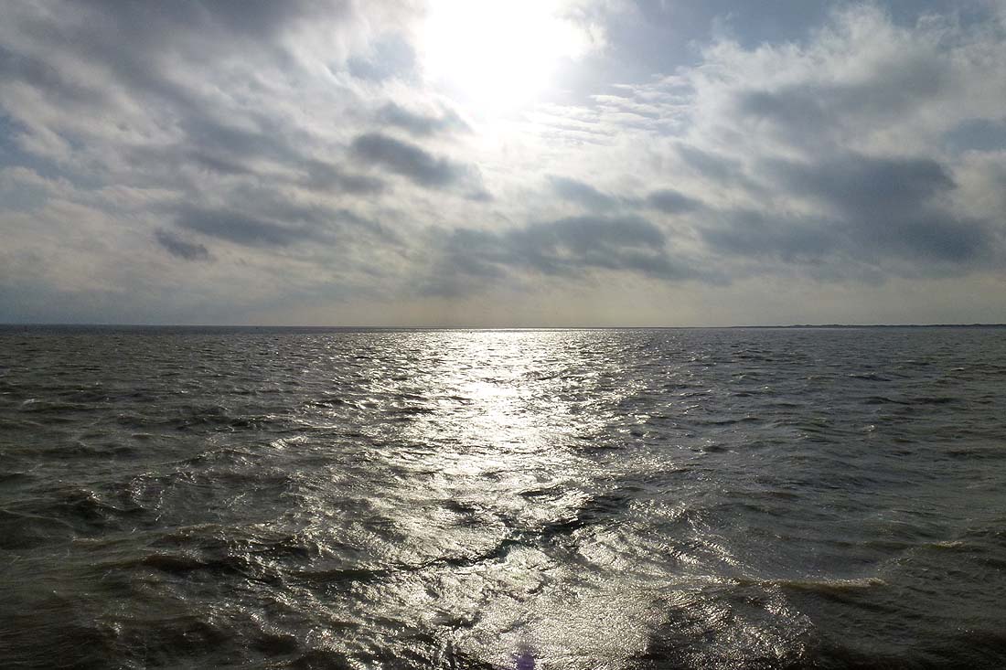 Das Meer ist nun viel ruhiger und der Blick hat viel Platz bis zum weiten Horizont.