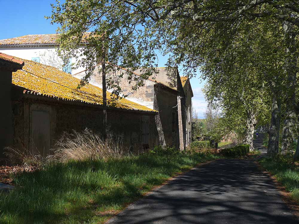 Der asphaltierte Weg führt unter endlos vielen Platanen am Kanal entlang, hier und da gibt es mal ein Gehöft...