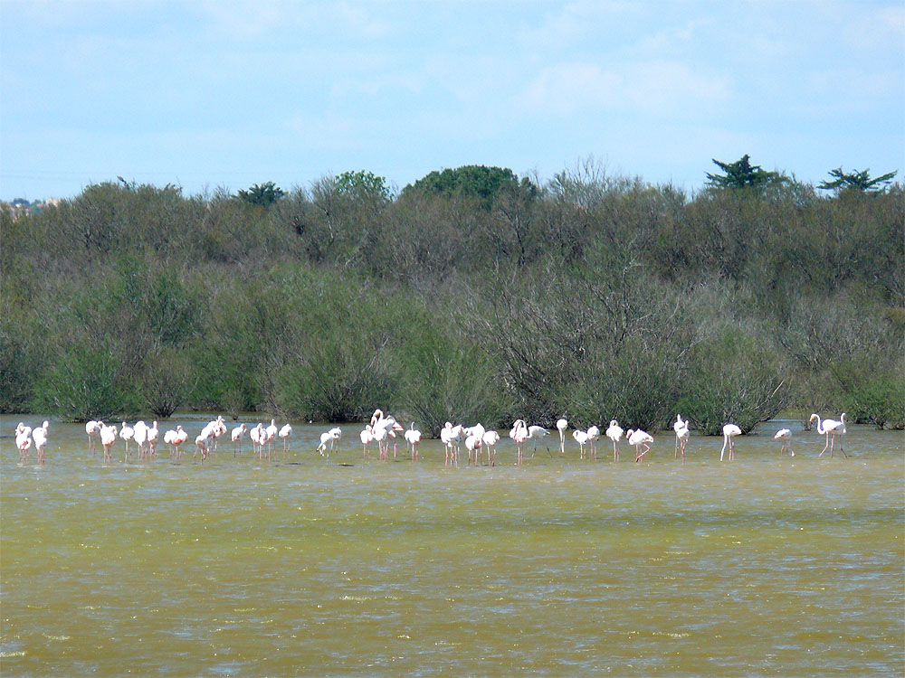 Ein Blick in die Landschaft, dort sind wild lebende Flamingos, die man sonst nur aus dem Zoo kennt. Wahnsinn, man atmet schon schneller!