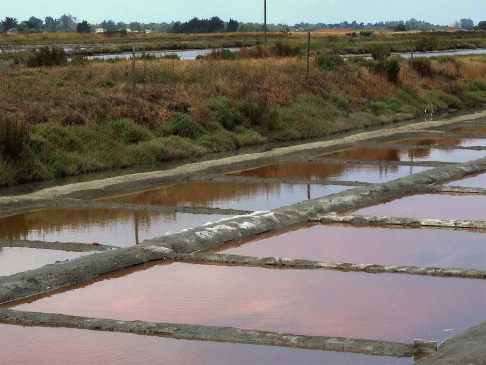 An der Straße liegen die bekannten "Salzgärten", wo das begehrte "Fleur de Sel" in Handarbeit geerntet wird.
