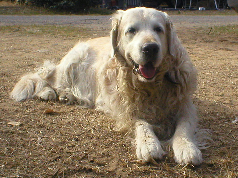 "Zitzemann", der goldene Redtriever unserer mitgereisten Freunde wartet schon sehnsüchtig auf uns und auf sein Leckerchen....