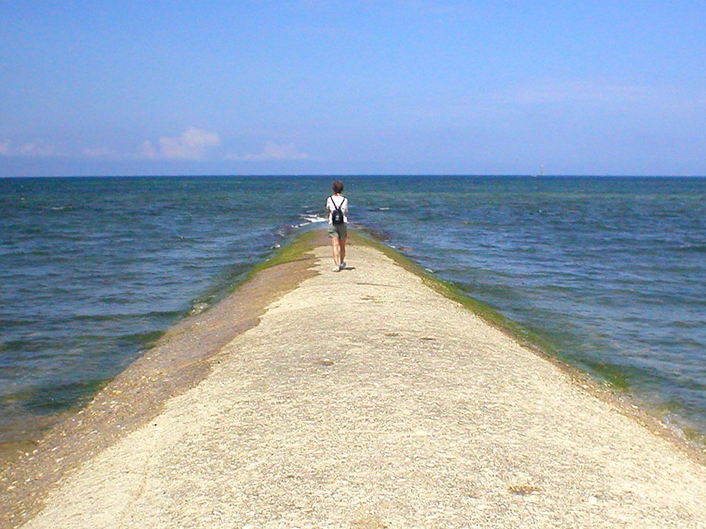 Über die befestigten Dämme dieser Fischschleuse kann man weit ins Meer wandern...