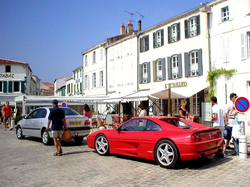 Gleißendes Sonnenlicht am Hafen und ein roter Ferrari im Parkverbot! Der Fahrer wird das Knöllchen wohl aus der Portokasse zahlen...