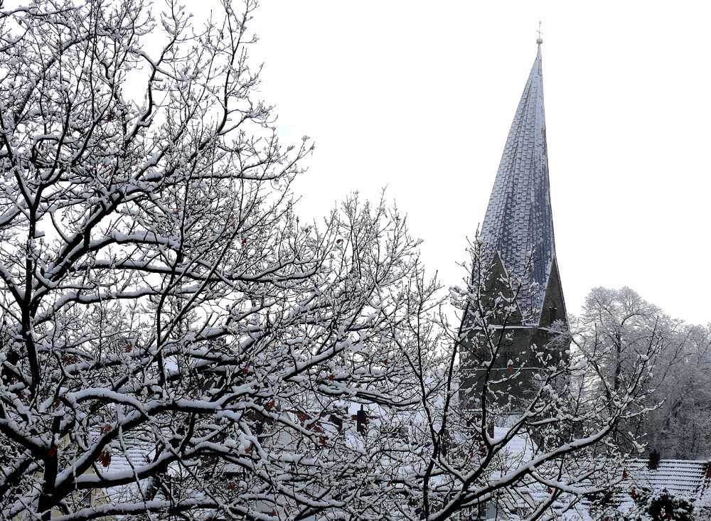 hatte bei kirchturmhohem Schnee seinen Esel an der Turmspitze